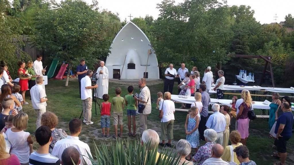 Szintén egy közösségi kemence tervezése és építése a Sződligeti Római Katolikus Plébánia udvarán. Ez egy kis szabadtéri kápolnát szimbolizál, a kemence, üstház, grillező hármas egységét félbevágott kupola védi az időjárástól. Csúcsa 365 cm magas, ez az év napjait jelöli, rajta áll az 52 cm magas kereszt, utalva az év 52 hetére. A 3 db körablak a Szentháromságot jelképezi.