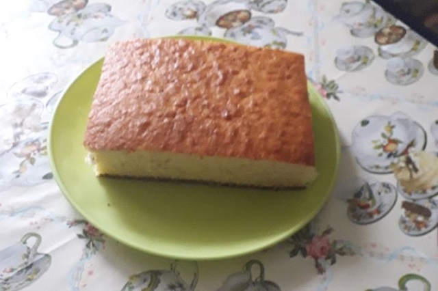 —Szép lett. Anyukám jobban szerette a hamis piskotát, mint ami sok tojásból készült mert nem esett úgy ossze. A másik ok pedig az, hogy amikor felnőttünk sosem volt elég tojás hogy mindenbe jusson.