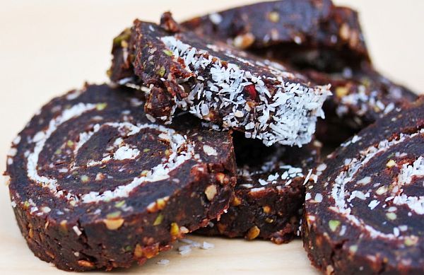 Akárcsak a keksz-szalámit, a következő süteményt is ugyanúgy fel kell tekerni, csak annyi a különbség, hogy ez fényévekkel egészségesebb, táplálóbb és akár finomabb is. Nincs szükség hőkezelésre, így akár a gyerekek is elkészíthetik.