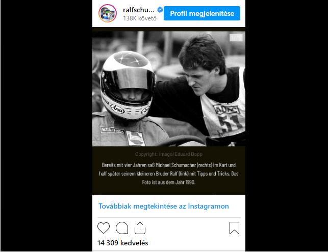 Ralf Schumacher nagyon megható fotót osztott meg a közösségi oldalán: egy több mint három évtizeddel ezelőtti fekete-fehér képen látható Michaellel, ahogy éppen jó tanácsokkal látja el egy gokartban ülve.
