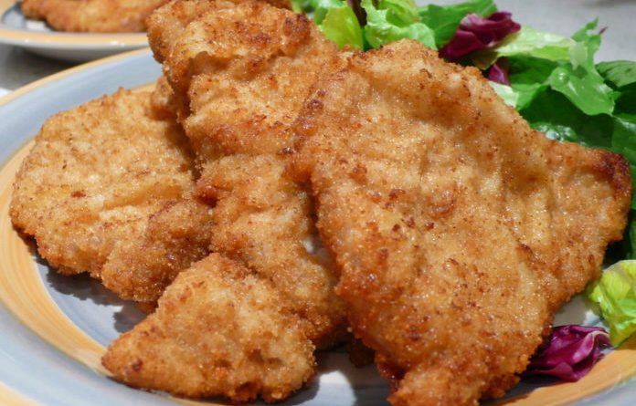 Sajttal töltött rántott hús sütőben készítve, mennyei finomság, az olvadozó sajtnak nem lehet nemet mondani