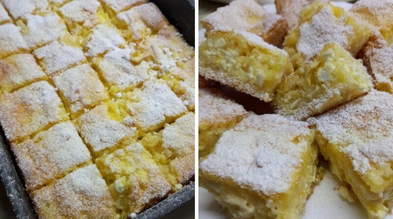 30 dkg rétesliszt, 20 dkg kristálycukor, 1 sütőpor. Ezeket összekevertem, és kétfelé mértem, félretettem. 1/2 kg félzsíros túró, 1 csomag vaníliás cukor, 1 citrom reszelt héja, összekevertem. Félretettem. 3 tojás, 3 dl hideg tej, a fehérjéket felvertem habnak, hozzákevertem a sárgáját és a tejet. Félretettem. 5 dkg vaj, v. Margarin 20×30-as tepsit kivajaztam. A lisztkeverék felét a tepsibe szórtam egyenletesen. A maradék vaj, (én margarinnal készítettem) felét rácsipkedem, és rászórtam a túrós keveréket, majd a lisztkeverék másik felét, és a maradék vajat rácsipkedem. Ezután egyenletesen rámertem a felvert tojással kevert tejet. Megrázogattam hogy mindenhova jusson, és beraktam az előre melegített sütőbe. 180 fokon fél óra alatt tökéletes lesz. Mennyei illat, mennyei íz!